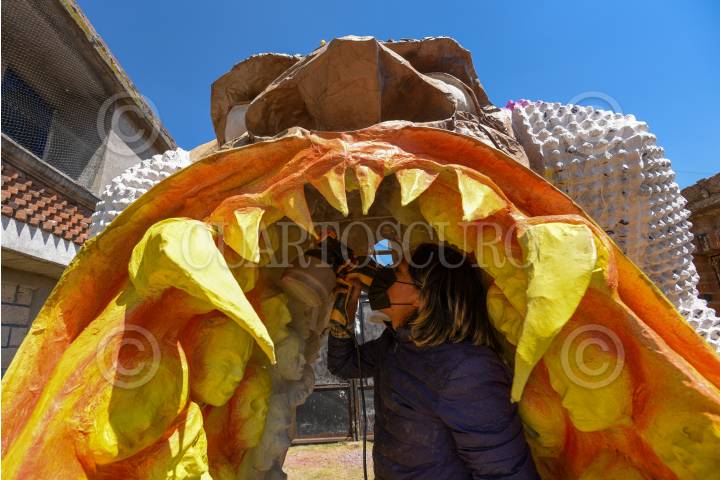 ALMOYA DE JUÁREZ, ESTADO DE MÉXICO, 22 DE MARZO 2024.- Los artesanos cartoneros Pablo Emmanuel Salazar y Oscar Flores Valdez tiene aproximadamente un mes trabajando en sus piezas para poder participar en el XXXI Concurso de Judas, compartiendo técnicas han ido dando vida al carrizo, hilo, engrudo, papel y pintura, representando en sus piezas temas de descontento social o problemáticas que aquejan en estos días a nuestra sociedad, en su taller en San Mateo Tlachichilpan buscan que este arte popular no se pierda, sobre todo por que ya no son tantos los artesanos que se dedican a esto, y toman cada una de sus piezas como un lienzo para expresar muchas cosas. FOTO: CRISANTA ESPINOSA AGUILAR /CUARTOSCURO.COM