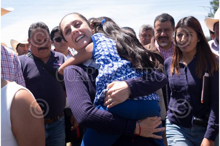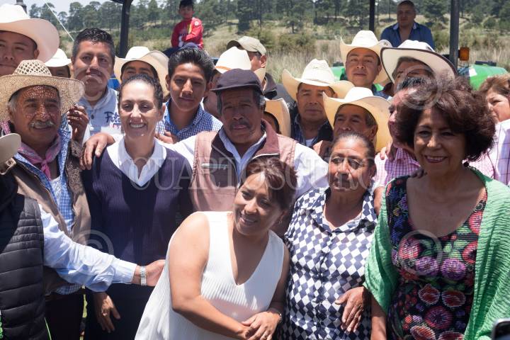 Claudia Sheinbaum, durante acto protocolario ante ejidatarios en el Paraje la Cima.