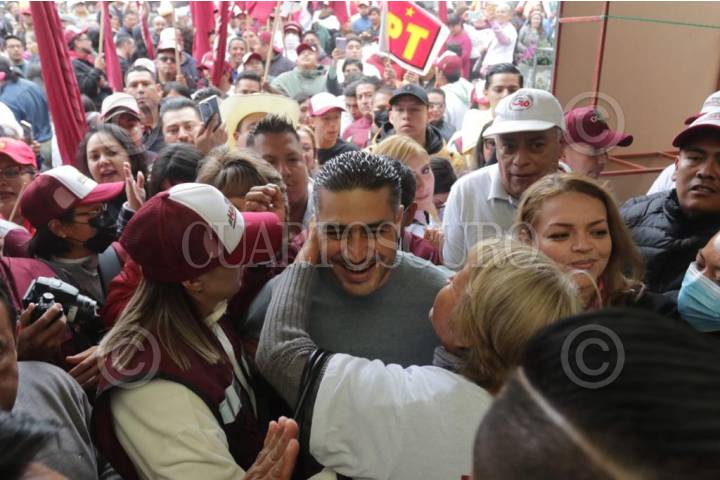 CIUDAD DE MÉXICO, 08OCTUBRE2023.- Omar García Harfuch, aspirante a la coordinación de los Comités para la Defensa de la Cuarta Transformación en la Ciudad de México, durante el encuentro con vecinos de San Miguel Topilejo en la alcaldía Tlalpan. FOTO: CUARTOSCURO.COM