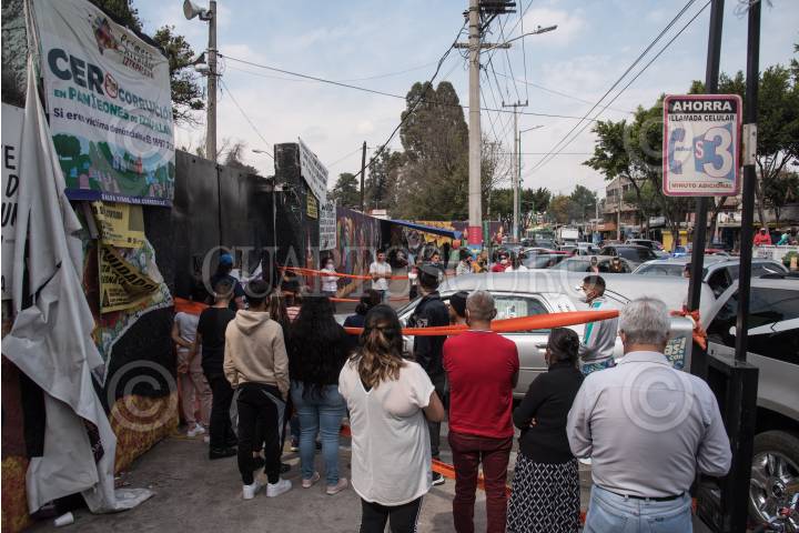 Cerco de seguridad en el panteón de San Nicolás Tolentino en la alcaldía Iztapalapa por el caso un bebé encontrado sin vida en el penal de San Miguel, en la ciudad de Puebla y que se ha confirmado fue exhumado de este cementerio.
