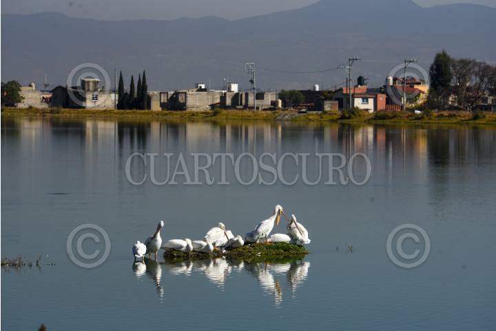 TOLUCA, ESTADO DE MÉXICO, 29DICIEMBRE2024.- Comienza la llegada de pelícanos al bordo de San Jerónimo, ubicado en la delegación de San Pablo Autopán, Toluca, esta ave año con año arriba a diversos cuerpos de agua del Valle de Toluca, migran buscando refugio de las bajas temperaturas y alimento. FOTO: CRISANTA ESPINOSA AGUILAR /CUARTOSCURO.COM