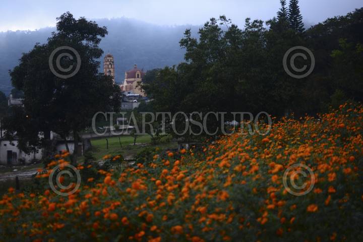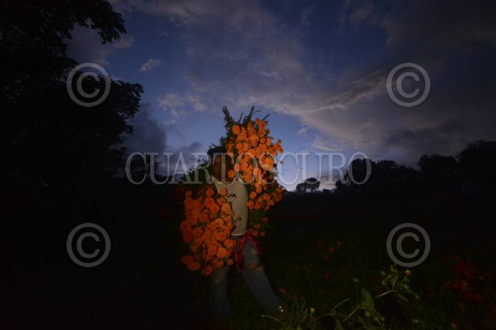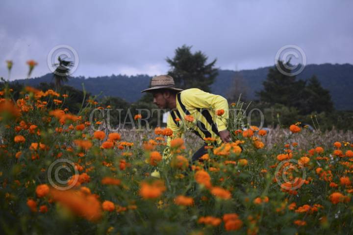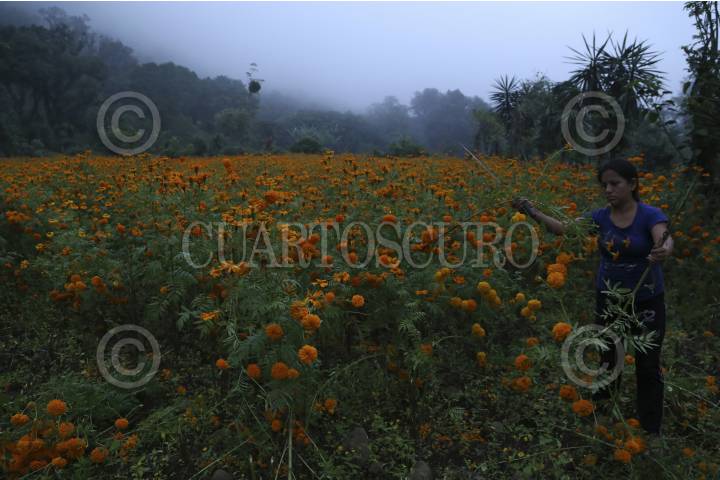 NAOLINCO, VERACRUZ, 02NOVIEMBRE2015.- San Pablo Coapan es un comunidad al norte de Xalapa perteneciente al municipio de Naolinco, su gente se dedica a labores propias del campo y para Día de Muertos sus paisajes se pintan de color naranja y amarillo; en la región sembrar el Cepampasúchil desde junio para cultivarlo en noviembre es parte de su misma historia, aquí el ramo sale en 10 o 15 pesos, la gente no la cosecha para vivir sino para adornar esta tradición que se afianza de generación en generación. Niños, jóvenes, adultos y ancianos saben cómo hacer crecer la tan conocida flor que perfuma los pueblos aledaños y ciudades. El 1 y 2 de noviembre son de las fechas más memorables del año, estos pueblos ocultos por las nubes y la frondosa vegetación aman sus tradiciones, dicen que su tierra es bendita y por ello la honran como a su identidad. FOTO: ILSE HUESCA /CUARTOSCURO.COM