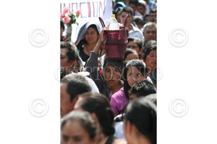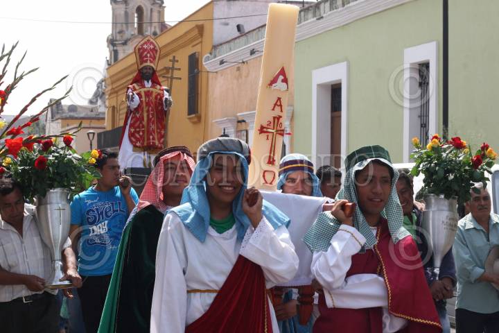 OAXACA, OAXACA, 02ABRIL2013.- Pobladores provenientes de 27 comunidades del municipio de Ocotlán de Morelos realizaron una peregrinación en la ciudad de Oaxaca para presentar a su santo, San Pedro Apóstol ante la patrona de los oaxaqueños, la virgen de la Soledad, acompañados de música de banda y diversas imágenes los feligreses avanzaron por las calles de la Verde Antequera hasta llegar a la basílica de la Soledad en donde escucharon misa. FOTO: ARTURO PÉREZ ALFONSO/ CUARTOSCURO.COM