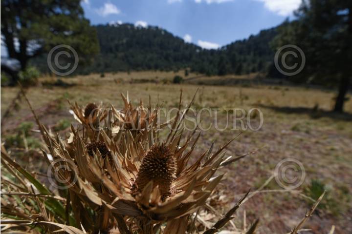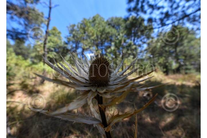 OCOYOACAC, ESTADO DE MÉXICO, 14MARZO2024.- En los bosques de San Pedro Atlapulco se pueden observar Rosas de las Nieves, que regularmente la podemos encontrar en la zona del volcán Xinantécatl, también ha sido vista en los volcanes Iztaccíhuatl y Popocatépetl, y en las zonas altas de entidades como Chiapas, Hidalgo, Jalisco, Michoacán, Morelos, Oaxaca, Veracruz incluidas la CDMX y el Estado de México; crece en alturas superiores a los 3 mil metros sobre el nivel del mar y soporta temperaturas bajo cero grados, también es conocida como Rosa de la Montaña y su nombre científico es Eryngium monocephalum. FOTO: CRISANTA ESPINOSA AGUILAR /CUARTOSCURO.COM
