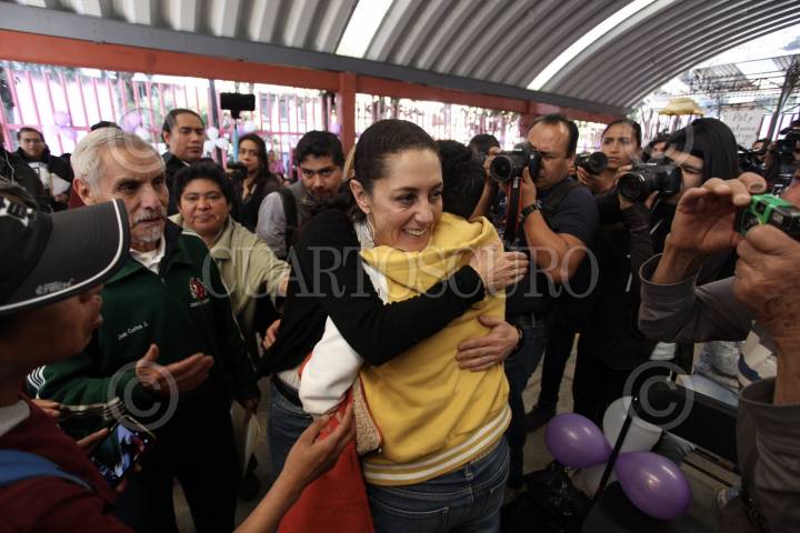CIUDAD DE MÉXICO, 09ENERO2018.- Claudia Sheinbaum, precandidata por Morena al gobierno de la Ciudad, en compañía de Martí Batres, precandidato al Senado, visitó el pueblo de San Andrés Totoltepec en la delegación Tlalpan como parte de sus actividades proselitistas. FOTO: ADOLFO VLADIMIR /CUARTOSCURO.COM
