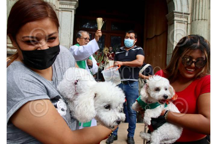 Personas llevaron a sus mascotas a que fueran bendecidos en el marco del día de San Ramón Nonato en el Templo de Nuestra Señora de la Merced.