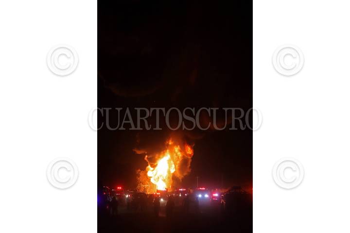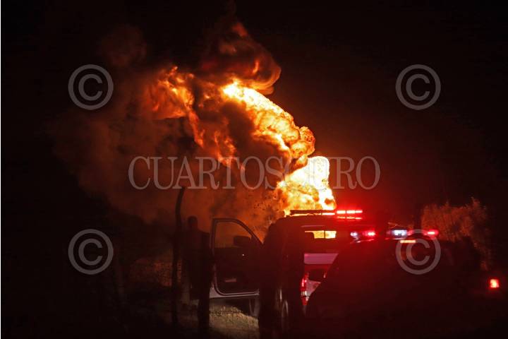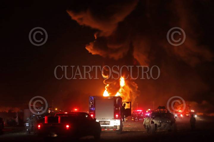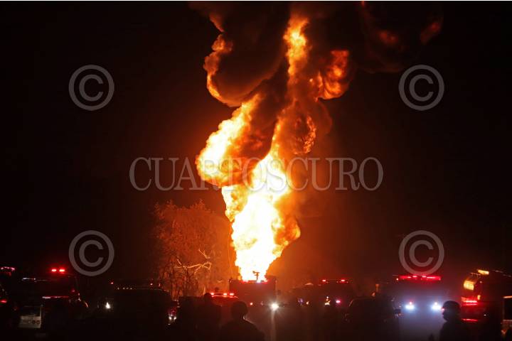 TLAJOMULCO DE ZUÑIGA, JALISCO, 04ABRIL2018.- La noche de ayer en el poblado de San Sebastián el Grande se reporto un incendio en una toma clandestina en un ducto de Pemex de Guadalajara-Salamanca, el cual fue controlado por personal de Bomberos del municipio con el apoyo de protección Civil y Bomberos del Estado así como de otras dependencias municipales metropolitanas. FOTO: FERNANDO CARRANZA GARCIA / CUARTOSCURO.COM