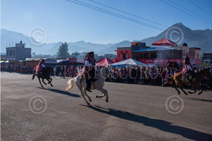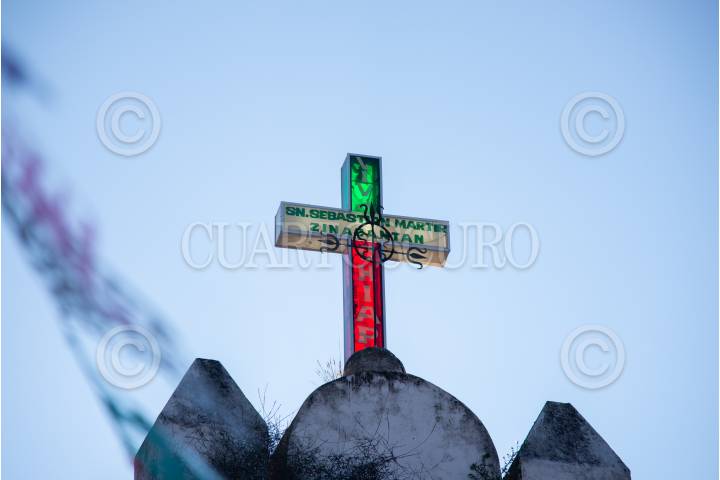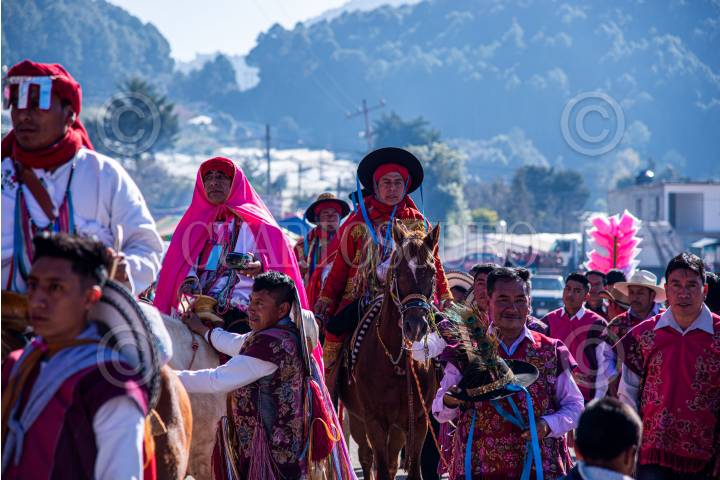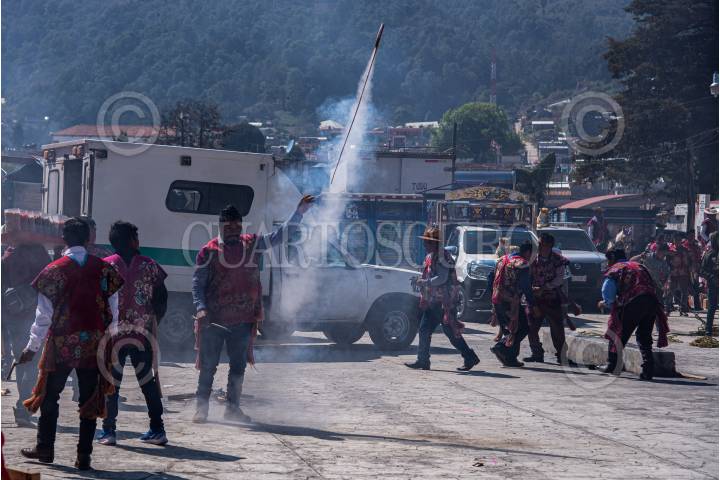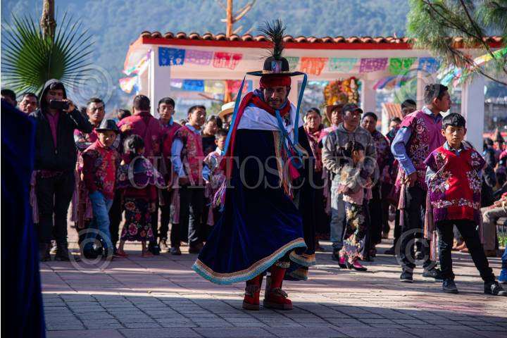 Habitantes tsotsiles de Zinacantan, Chiapas, disfrutan de la fiesta en honor a San Sebastián.