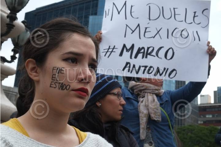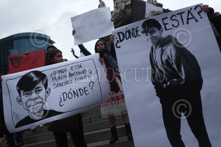 CIUDAD DE MÉXICO, 28ENERO2018.- Familiares y amigos exigieron en las escalinatas del Ángel de la Independencia la presentación con vida del alumno de preparatoria Marco Antonio Sánchez Flores, quien fue detenido por elementos de la Secretaría de Seguridad Pública el pasado 23 de enero, desde ese momento no se conoce paradero. FOTO: ANDREA MURCIA /CUARTOSCURO.COM