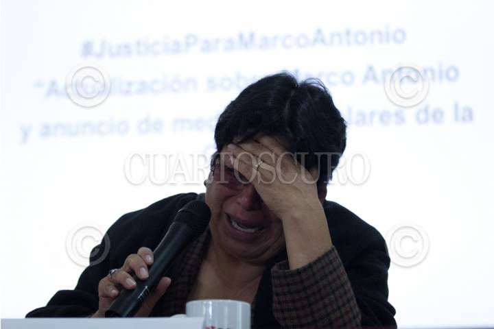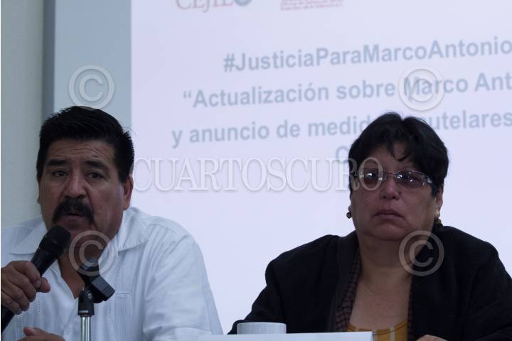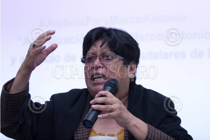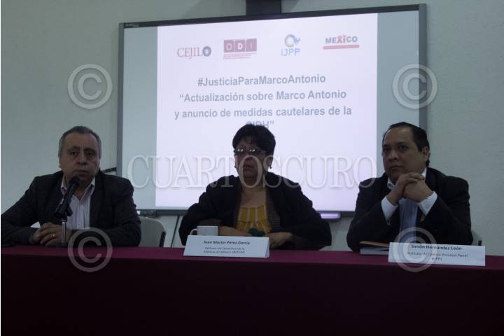 CIUDAD DE MÉXICO, 05ABRIL2018.- Juan Martínez Pérez García, director ejecutivo de la Red por los Derechos de la Infancia en México; Trinidad Sánchez Flores, mamá del joven Marco Antonio Sánchez Flores, y Simón Hernández León, abogado del Instituto de Justicia Procesal Penal (IJPP), ofrecieron conferencia para dar a conocer los avances entorno al caso del joven de 17 años víctima de desaparición forzada, el pasado 23 de enero del presente año a manos de policías de la Secretaría de Seguridad Pública. Su madre denunció los malos tratos con que se le tenía a su hijo, describió sangrados en los brazos por los amarres a los que se le sometía al joven, así como expresó que los médicos le han declaro sentirse incómodos por la presencia de los medios de comunicación. Por otro lado, puntualizaron su repudio a las observaciones de la primer visitadora general de la Comisión de Derechos Humanos del Distrito Federal Hilda Téllez Lino. Sin embargo, los padres declararon que Marco a tenido una recuperación “satisfactoria” y se le ve más lúcido en sus funciones cognitivas, pero aún sin posibilidad de dar una declaración de los hechos. FOTO: GALO CAÑAS /CUARTOSCURO.COM