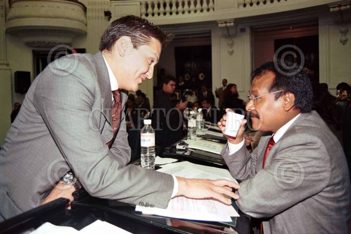 Jacobo Bonilla Cedillo y Alejandro Sánchez Camacho durante la sesión de la Asamblea Legislativa del D.F. . FOTO: Juan Pablo Zamora/CUARTOSCURO.COM