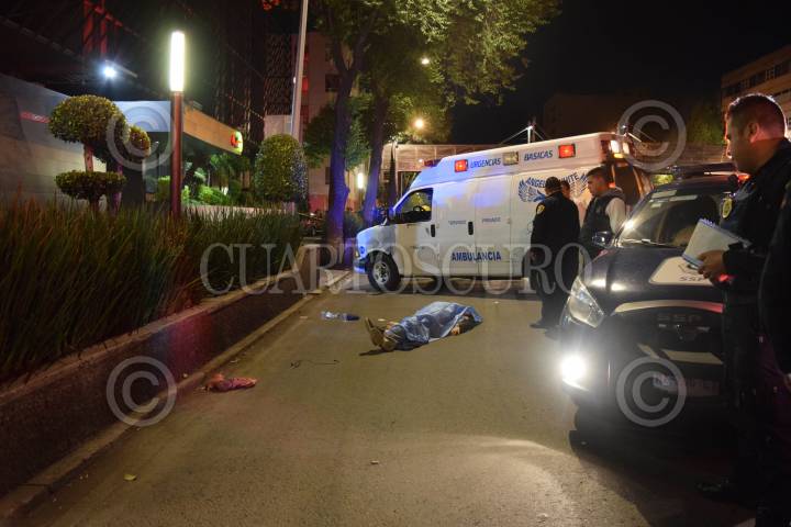 CIUDAD DE MÉXICO., 10MAYO2018.- Un hombre identificado con el nombre de Arturo N. de 44 años, perdió la vida por varios impactos de arma de fuego que recibió en el cuerpo, a manos de un sujeto que le disparo, cuando se disponía a entrar a un hotel de la calzada de Tlalpan, con una joven identificada como Rita N. de 27 años. El responsable de efectuar los disparos, huyo por cazada de Tlalpan con dirección al Sur a bordo de una camioneta. El cuerpo quedo sin vida sobre el asfalto de dicha avenida a la altura de la calle Manuel J. Othón en la colonia Obrera. FOTO: LUIS CARBAYO /CUARTOSCURO.COM