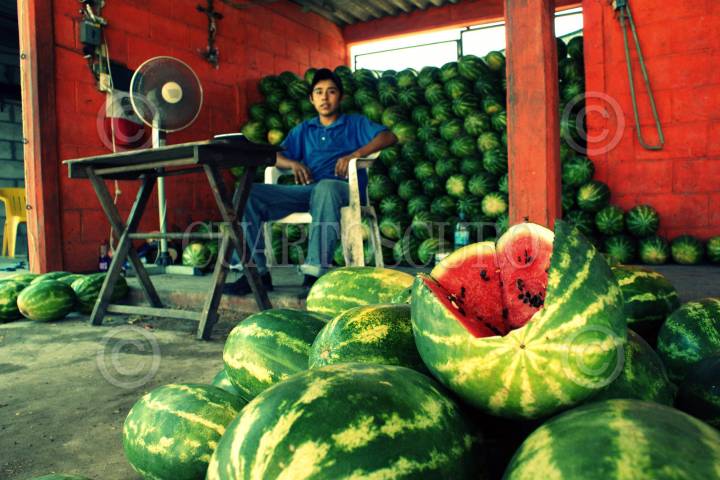 Un vendedor de sandía ofrece su mercancía en el mercado de Amilcingo