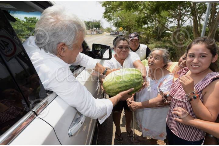 CAMPECHE, CAMPECHE, 13ABRIL2019.- El presidente Andrés Manuel López Obrador recibe muestras de apoyo a su paso por la carretera Hopelchén-Campeche, comunidad Bolonchén de Rejón. FOTO: GOBIERNO DE LA REPÚBLICA /CUARTOSCURO.COM