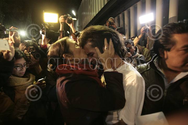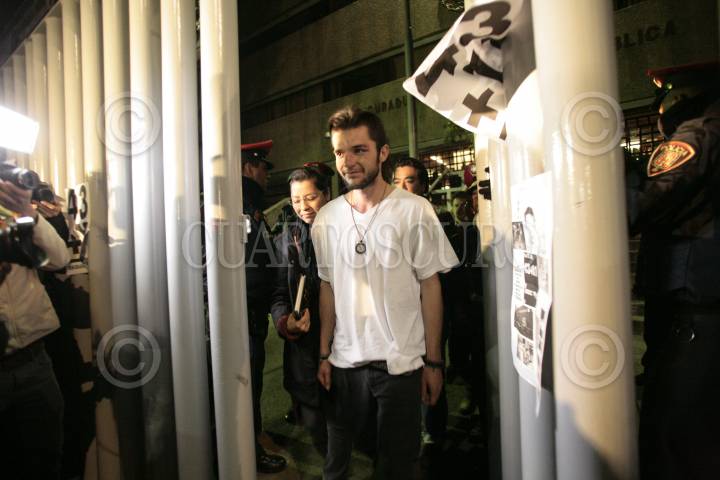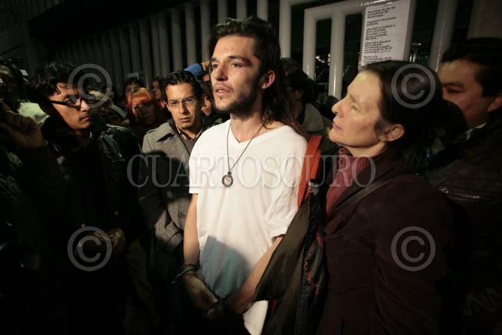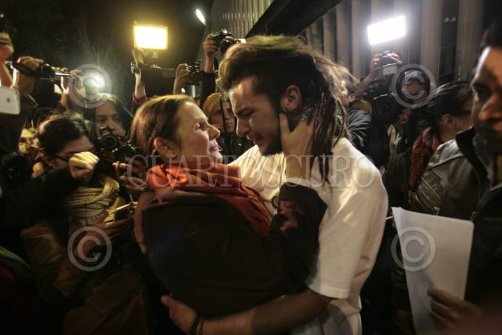 MÉXICO, D.F., 29NOVIEMBRE2014.- Sandino Bucio estudiante de la UNAM quien fuera detenido y trasladado a la SEIDO por personas vestidas de civil, fue puesto en libertad alrededor de las 3 de la mañana de este sábado, después de absolverlo de cualquier cargo. El joven llevado a la subprocuraduría para que declarará por los hechos del 20 de noviembre en el Zócalo. FOTO: CARLO ECHEGOYEN /CUARTOSCURO.COM