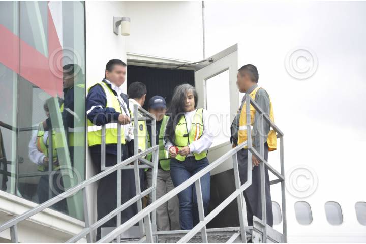 MÉXICO D.F., 20AGOSTO2013.- Sandra Ávila Beltrán, conocida como “La Reina del Pacífico” fue extraditada a Estados Unidos en agosto de 2012 y después de cumplir una condena de 70 meses de cárcel, llego hoy al rededor de las 11:00 A.M. junto con otro repatriados de forma voluntaria , a la Terminal 2 del Aeropuerto Internacional de la Ciudad de México, en un vuelo comercial. Posteriormente fue trasladada al hangar de la Procuraduría General de la República, para ser llevada al Penal, de El Rincón, en Tepic, Nayarit. FOTO: PGR /CUARTOSCURO.COM