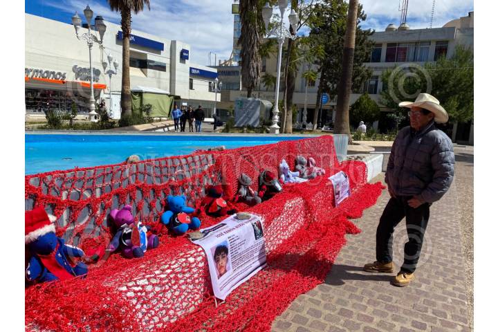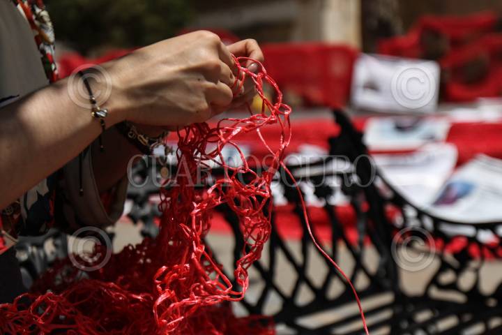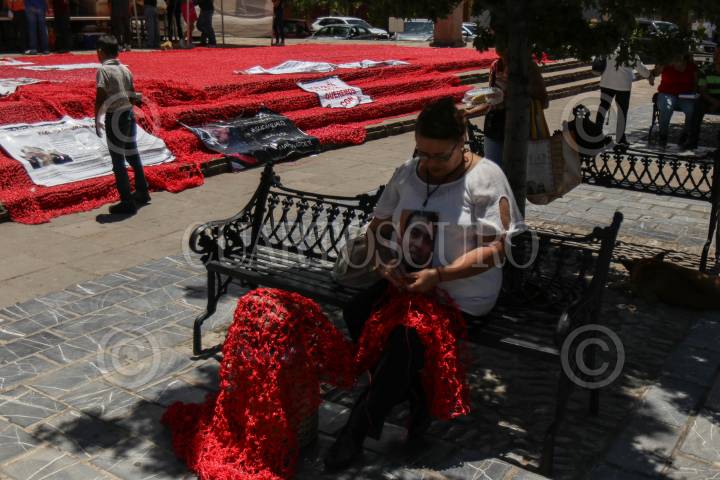 FRESNILLO, ZACATECAS, 11FEBRERO2024.- Colectivos de familiares de desaparecidos en Zacatecas en compañía de Sangre de mi Sangre realizaron una actividad de tejido en el Jardín Obelisco en el centro histórico del municipio. Además de tejer la representación simbólica de las miles de víctimas en el país, las madres arreglaron el árbol de la memoria que se mantiene en el mismo espacio. FOTO: ADOLFO VLADIMIR /CUARTOSCURO.COM