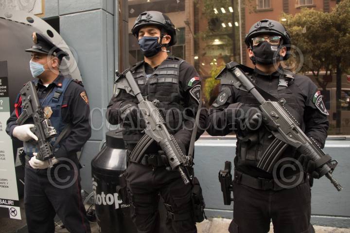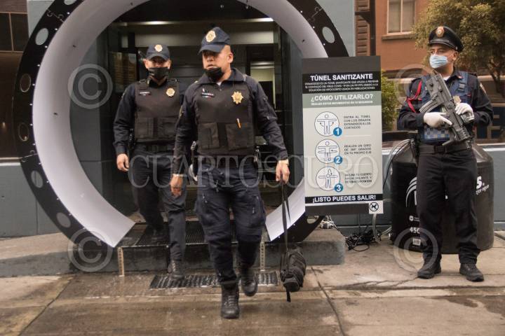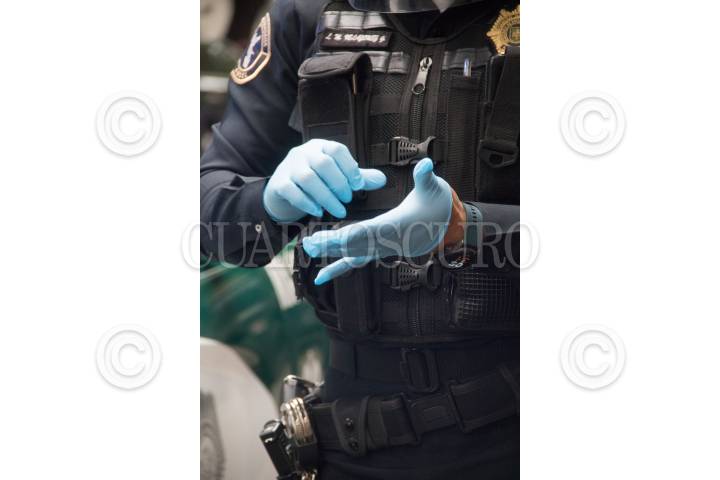 Sanitizador en la Secretaria de Seguridad Ciudadana, mascarillas y guantes