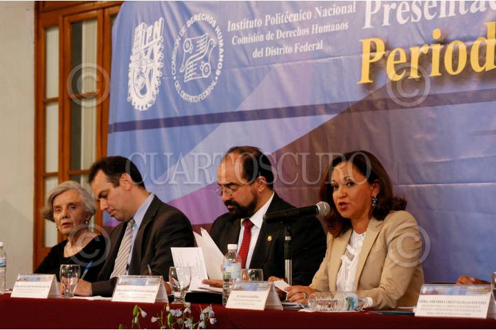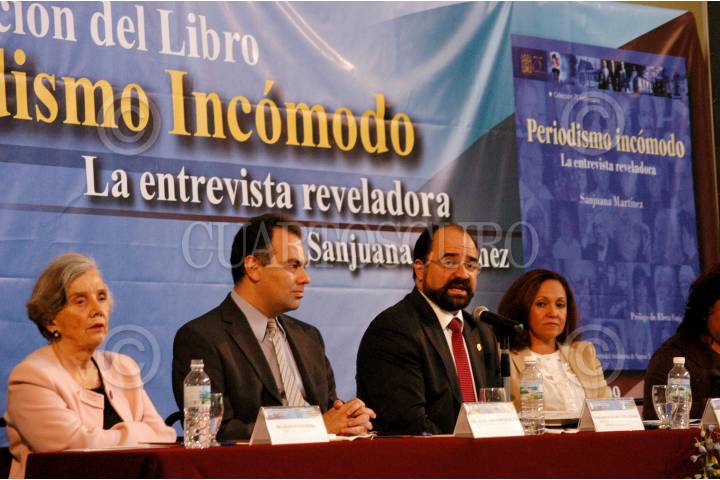 MÉXICO D.F., 02JUNIO2009.- La periodista Sanjuana Martínez, acompañada de la periodista y escritora Elena Poniatowska, Jaime Rochín del Rincón, Defensor de los Derechos Politécnicos del IPN y Emilio Álvarez Icaza Longoria, Presidente de la Comisión de Derechos Humanos del D.F. realizó la presentación de su nuevo libro que tiene como titulo “ Periodismo Incómodo, La Entrevista Reveladora" esto en la Unidad de Enseñanza Continua de San Lázaro del IPN. FOTO: GUILLERMO PEREA/CUARTOSCURO.COM