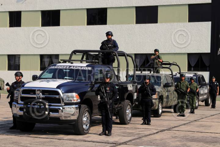 CUERNAVACA, MORELOS05ABRIL2019.- Banderazo de salida del operativo policiaco-militar por el periodo de semana santa, denominado “Esta semana santa, diviértete sanamente”, en la cual participa la XXIV Zona Militar, la Policía de Morelos y la Federal, también Protección Civil y la Fiscalía General del Estado, así como autoridades municipales. FOTO: MARGARITO PÉREZ RETANA /CUARTOSCURO.COM