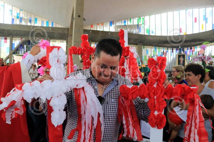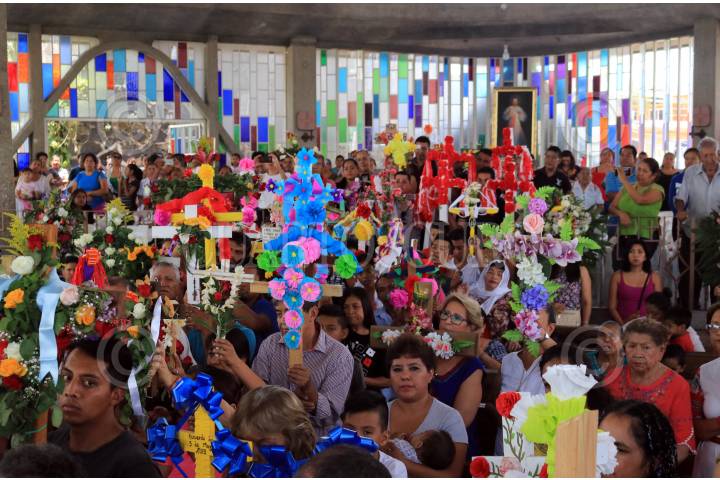 EMILIANO ZAPATA MORELOS, 03MAYO2019.- Durante este día decenas de trabajadores de la construcción acudieron a la iglesia de la Santa Cruz a bendecir las cruces que colocarían en las obras donde laboran. FOTO: MARGARITO PÉREZ RETANA /CUARTOSCURO.COM