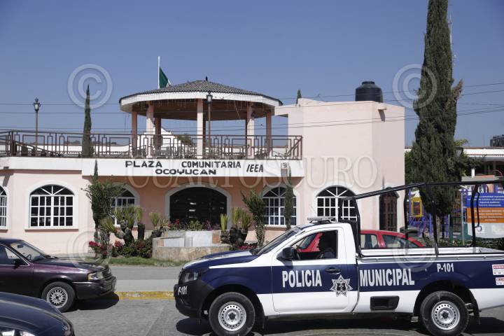 SANTA CLARA OCOYUCAN, PUEBLA, 02MARZO2018.- Fachada del parque principal del municipio de Santa Clara Ocoyucan; Puebla, donde residía Aaron Varela, precandidato por Morena a la presidencia municipal, asesinado la madrugada de ayer al interior de su vehículo por impacto de bala. FOTO: HILDA RÍOS / CUARTOSCURO.COM
