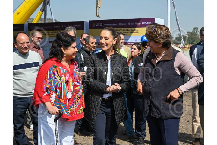 CIUDAD DE MÉXICO, 16NOVIEMBRE2024.- Claudia Sheinbaum, Presidenta de México; Clara Brugada, Jefa de Gobierno, y Delfina Gómez, gobernadora del Estado de México, supervisamos esta mañana la construcción del trolebús elevado de Santa Martha Acatitla a Chalco, que conecta el Estado de México con la Ciudad de México. FOTO: PRESIDENCIA/CUARTOSCURO.COM .