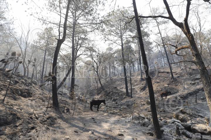 Ganado afectado por el incendio en Sierra de Santiago en la zona conocida como ejido La Ciénaga.