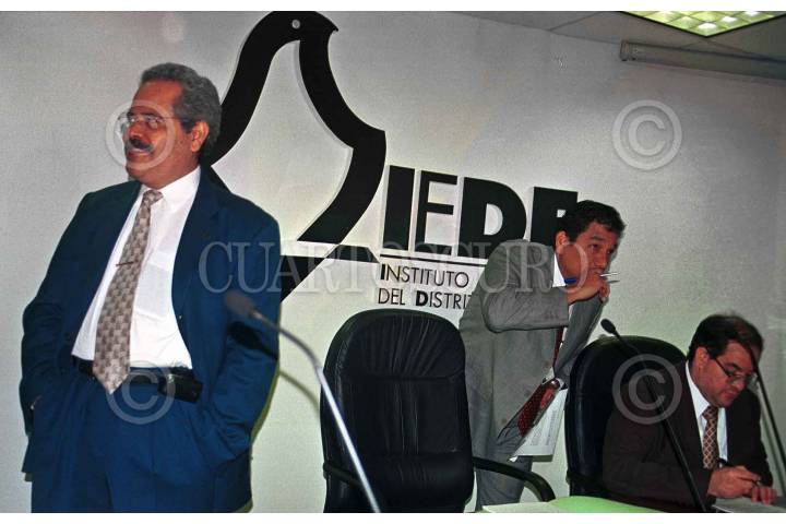 Javier Santiago, consejero presoidente, Juan Francisco Reyes, consejero electoral, y Adolfo Riva Palacio, secretario ejecutivo, antes de dar inicio a la sesión ordinaria en el IEDF. FOTO: Sandra Perdomo/CUARTOSCURO.COM