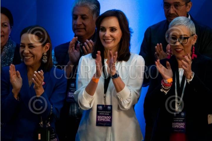CIUDAD DE MÉXICO, 27ENERO2024.- Josefina Vázquez Mota, candidata al distrito de Huixquilucan, Estado de México; Lily Téllez, candidata al senado de la República; y Alejandra Reynoso, coordinar las Causas Sociales en el equipo de Xóchitl Gálvez, durante la entrega de constancia a Xóchitl Gálvez como candidata a la presidencia de la República por la alianza PRI-PAN-PRD. FOTO: GALO CAÑAS/CUARTOSCURO.COM