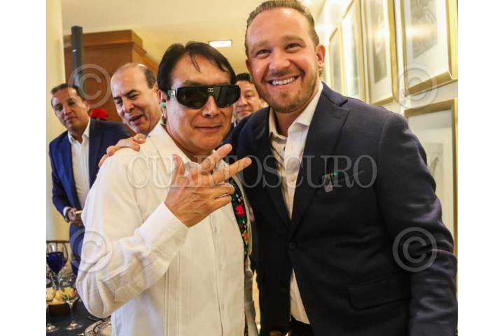 CIUDAD DE MÉXICO. 13MAYO2024.- Santiago Taboada Cortina, candidato de la Alianza Va Po la CDMX, se reunió está tarde con miembros de la Sociedad de Autores y compositores, en sus instalaciones de la Colonia Xoco de la alcaldía Benito Juárez. En la imagen con Elías Mejía de los Angeles Azules. FOTO: VICTORIA VALTIERRA/CUARTOSCURO.COM