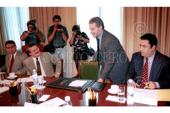Santiago Creel, secretario de Gobernación, al ser cuestionado por periodistas al final del evento aseguró que el Instituto Mexicano de la Radio ( IMER) no desaparecera. FOTO: Oswaldo Ramírez/CUARTOSCURO.COM
