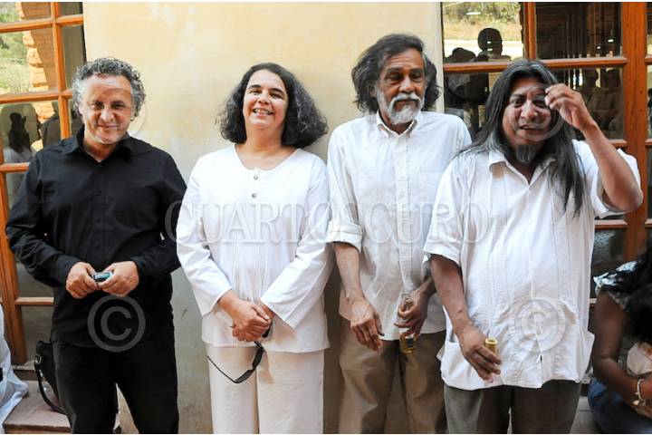 OAXACA, OAXACA, 23MARZO2009.- Los artistas visuales y plásticos Gabriel Orozco, Jan Hendrix y Francisco Castro Leñero junto a la titular del Consejo Nacional para la Cultura y las Artes Consuelo Sáizar en la inauguración de la exposición 2501 Migrantes, del creador Alejandro Santiago. FOTO: CUARTOSCURO.COM