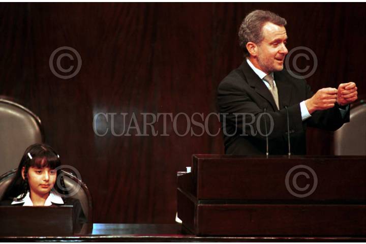 El secretario de Gobernación, Santiago Creel, rechazó categóricamente que haya recibido financiamiento de la Asociación "Amigos de Fox" para su campaña a la jefatura de Gobierno del DF durante la elección del año 2000. Después de participar en la clausura del Primer Parlamento de las Niñas y los Niños de México. FOTO: Oswaldo Ramírez/CUARTOSCURO.COM