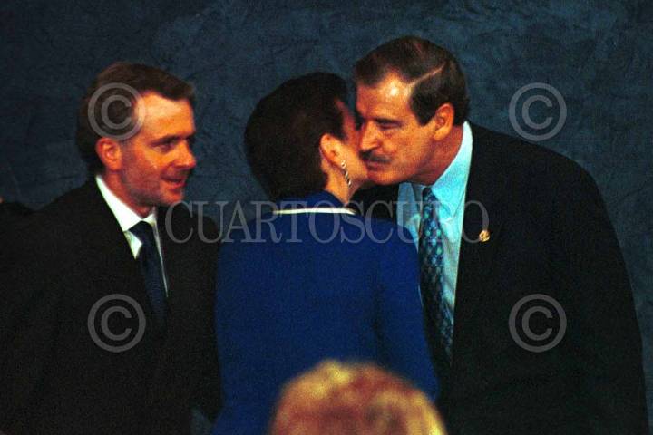 El presidente Vicente Fox presidió la primera sesión ordinaria del Consejo Nacional de Población(CONAPO) 2002. En la gráfica, saluda a la secretaria general de ese Consejo, Elena Zúñiga, en el salón Adolfo López Mateos de la residencia oficial de Los Pinos. FOTO: Susana Navarrete/CUARTOSCURO.COM