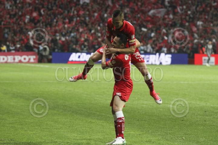 TOLUCA, ESTADO DE MÉXICO, 13MAYO2017.- Con un solitario gol de Antonio Rivas los Diablos Rojos del Toluca lograron pasar a las semifinales, en un partido sufrido ya que los Santos de Torreón lograron marcar tres tantos, sin embargo, en el global quedaron 5-4, a favor de los choriceros. FOTO: GALO CAÑAS /CUARTOSCURO.COM