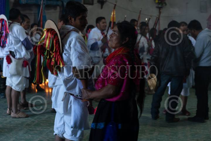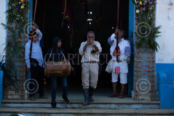 Autoridades religiosas se persignan al pasar frente a la Iglesia de la cabecera municipal durante la celebración del Cuarto Viernes.