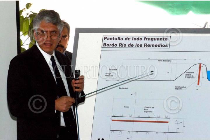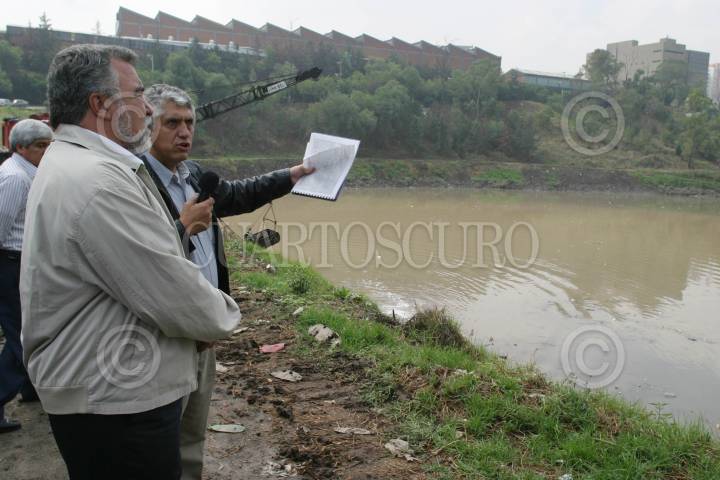 MÉXICO D.F. 31MAYO2006.- El director Gral. del Sistema de Aguas del D.F. Germán Santoyo, explicó el sistema de desasolve de la presa San Joaquin, al jefe de Gobierno del Distrito Federal, Alejandro Encinas Rodríguez, durante la visita del titular del GDF a la delegación Miguel Hidalgo. FOTO: Diego Gallegos/CUARTOSCURO.COM
