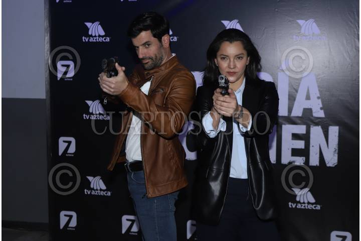 Claudio Lafargay Sara Maldonado durante la presentación de la segunda temporada de la serie Lotería del Crimen de TV Azteca.