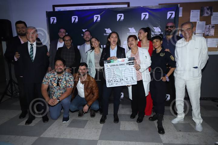 Parte del elenco durante la presentación de la segunda temporada de la serie Lotería del Crimen de TV Azteca.