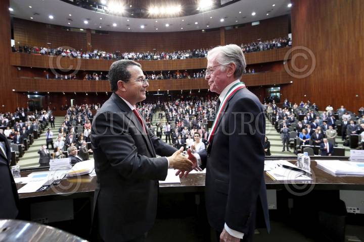 MÉXICO, D.F., 30ABRIL2013.- El periodista Jacobo Zabludovsky recibio la medalla Eduardo Neri Legisladores de 1913 en la Cámara de Diputados. En la imagen con su esposa Sarah Nerubay. FOTO: CUARTOSCURO.COM