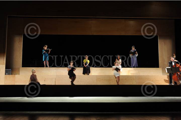 MÉXICO, D.F., 01ABRIL2010.- Irene Azuela, Ely Guerra, Lourdes Ambriz, Pilar del Río, viuda del escritor portugués José Saramago, Clarissa Malheiros, la periodísta Lydia Cacho y Ofelia Medina, durante el ensayo de la puesta "Voces de mujer en la obra de Saramago" realizado en el Palacio de Bellas Artes, donde realizan una lectura escenificada de fragmentos de las obras: Ensayo sobre la ceguera, Memorial del convento, Las intermitencias de la muerte, y un texto inédito sobre María Magdalena. FOTO: ISAAC ESQUIVEL/CUARTOSCURO.COM