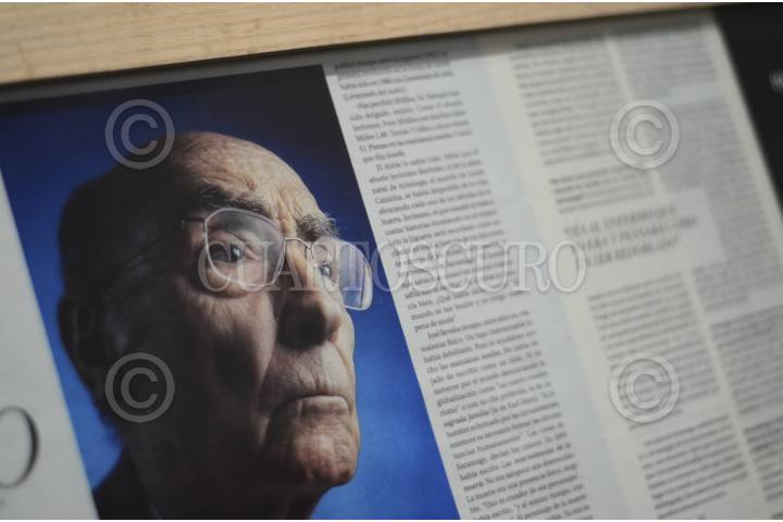 MÉXICO, D.F., 17SEPTIEMBRE2011.- Artículo-entrevista "No me hablen de la muerte porque ya la conozco" de Manuel Rivas a José Saramago publicada en El País Semanal el 23 de noviembre de 2008. Integrada por más de 500 documentos originales, además de otros tantos digitalizados, presentados bajo un diseño museográfico innovador que combina los recursos convencionales con los soportes digitales y audiovisuales. Se exhibe en el Antiguo Colegio de San Ildefonso una exposición dedicada a la figura del Premio Nobel de Literatura 1998, José Saramago. El público mexicano podrá acercarse a la vida y obra del escritor portugués, a través de la investigación y curaduría de Fernando Gómez Aguilera, director de la Fundación César Manrique. Con motivo del primer aniversario luctuoso del escritor, la Fundación José Saramago promueve en México la exposición José Saramago. La consistencia de los sueños. Museo Antiguo Colegio de San Ildefonso. FOTO: MISAEL VALTIERRA/CUARTOSCURO.COM