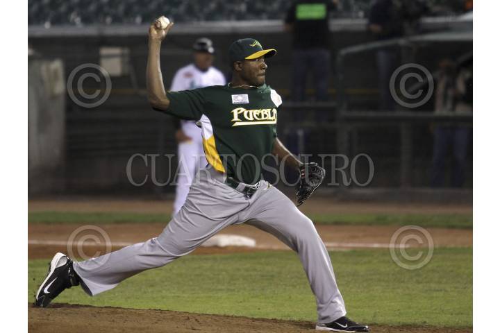 SALTILLO, COAHUILA, 17ABRIL2012.- Los Saraperos de Saltillo se enfrentaron en el primer juego de la serie contra los Pericos de Puebla, en el estadio Francisco I. Madero, el equipo local se impuso 4 carreras a 2. En la imagen Lorenzo Antonio Barcelo, pitcher de los pericos. FOTO: KARLA ITZEL RUÍZ /CUARTOSCURO.COM