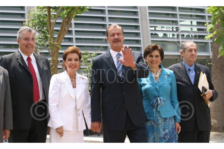 MEXICO, D.F. 16MAYO2006.- El diputado Álvaro Elías Loredo, Marta Sahagún, el presidente Vicente Fox, Sari Bernudez, titular del CONACULTA, Eduardo Lizalde previo a la ceremonia de inauguración de la biblioteca pública Central "Vasconcelos", ubicada en la colonia Buenavista. FOTO: Nelly Salas/CUARTOSCURO.COM