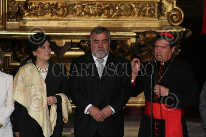 MÉXICO, D.F. 1NOVIEMBRE2006.- Se presentaron los resultados de la restauración realizada en la Catedral Metropolitana. Sari Bermudez, secretaria de cultura, el cardenal Norverto Rivera Carrera y Reyes Taméz, secretrio de educación, hicieron un recorrido por todo el templo. FOTO: PAOLA HIDALGO/CUARTOSCURO.COM