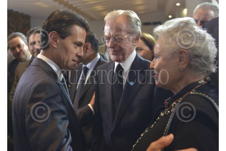 MÉXICO, D.F., 20FEBRERO2015.- Durante la reunión que sostuvo hoy con la Comunidad Judía de México, el Presidente Enrique Peña Nieto explicó que el Gobierno de la República tiene objetivos muy concretos para 2015, y afirmó que en los primeros 20 meses de Gobierno se lograron importantes reformas transformadoras de carácter estructural que ya comienzan a tener un impacto positivo en nuestro país. En la imagen el mandatario saluda al periodista Jacobo Zabludovsky y su esposa Sarita. FOTO: PRESIDENCIA /CUARTOSCURO.COM