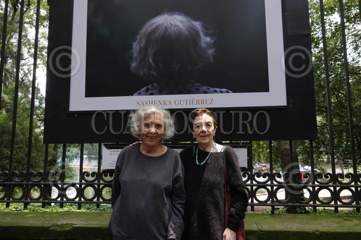 CIUDAD DE MÉXICO, 14AGOSTO204.- La escritora Elena Poniatowska y la fotógrafa Graciela Iturbide durante el recorrido de la exposición "Homenaje Fotográfico a Elena Poniatowska", que alberga imágenes de 19 fotógrafas mexicanas en la Galería Abierta Grutas de las Rejas del Bosque de Chapultepec, en donde será exhibida hasta el próximo 16 de septiembre. FOTO: GRACIELA LÓPEZ /CUARTOSCURO.COM