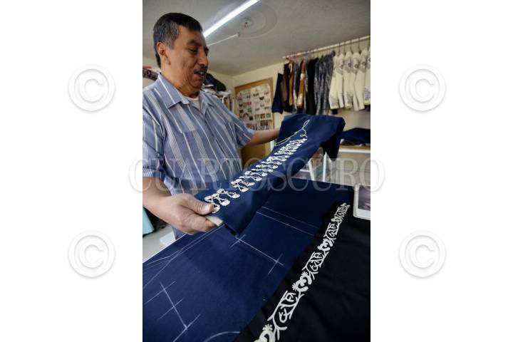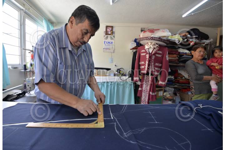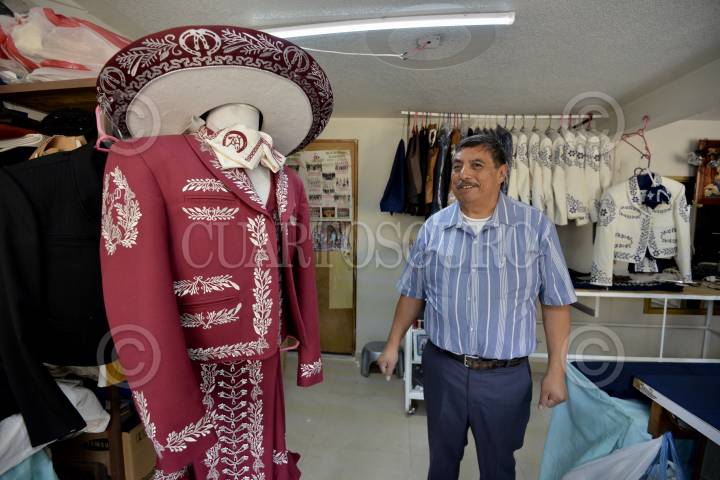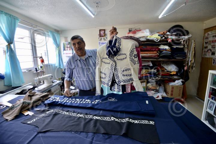 CALIMAYA, ESTADO DE MÉXICO, 14SEPTIEMBRE2018.- Rómulo Arriaga, diseñador artesanal de trajes de mariachis, junto con su familia lleva más de 30 años elaborando trajes de charro, que le encargan en estados como Jalisco, Puebla, Ciudad de México, Guanajuato, entre otros estados. FOTO: ARTEMIO GUERRA BAZ /CUARTOSCURO.COM