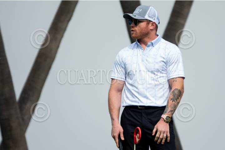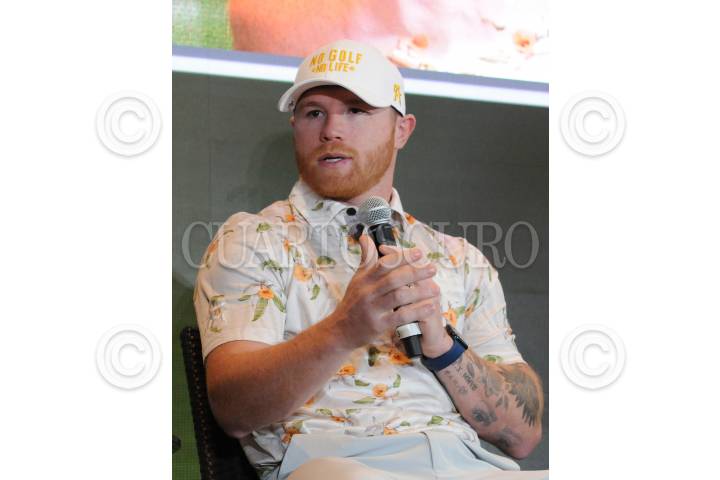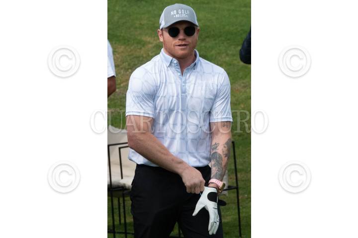 Saúl "Canelo" Álvarez durante la conferencia de prensa de la segunda edición del torneo de Golf "No Golf No Life" en el club Bosque Real de Huixquilucan, Estado de México.